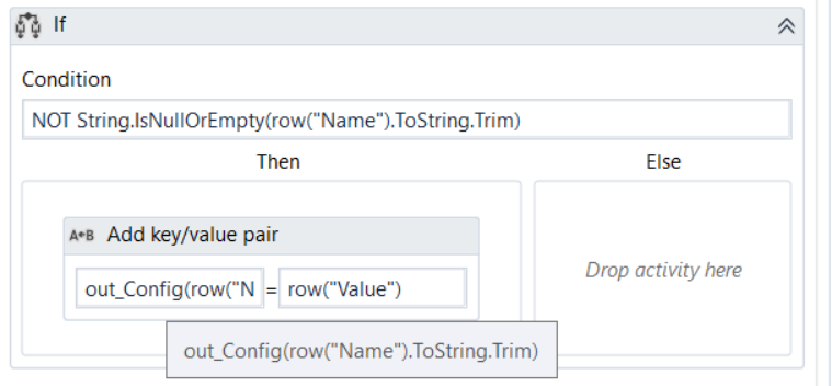 - For each处理数据表,使用Assign将每一行的Name作为Key,Value作为值存入字典中。